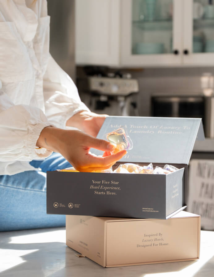"I LOVE HOW HOTEL COLLECTION'S LAUNDRY PODS MAKE MY LINENS SMELL LUXURIOUS AND ARE SAFE AND NONE TOXIC! SERIOUSLY, TRY THEM OUT. YOU WON'T BE DISAPPOINTED."